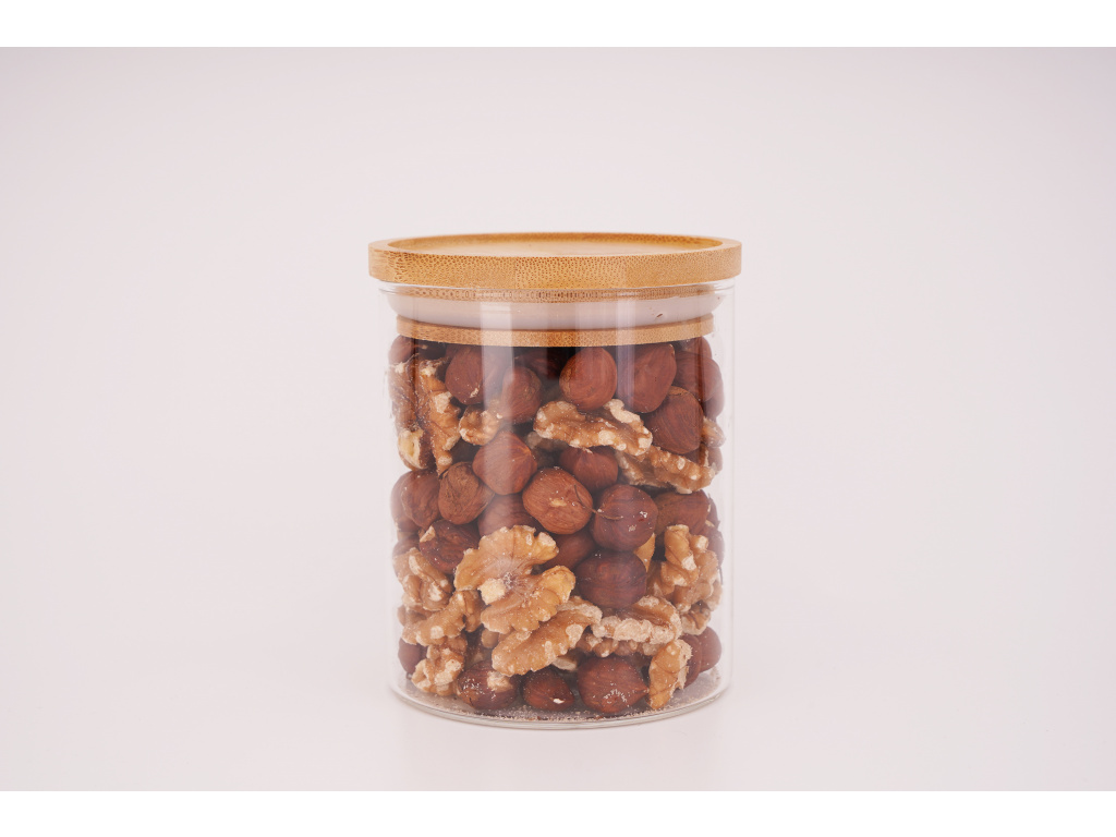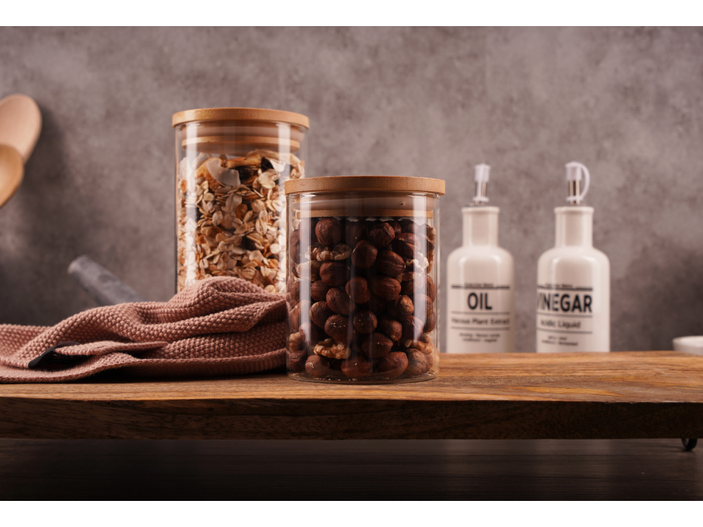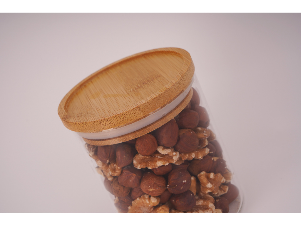 Skvěle těsnící dřevěné víčko přidávává dóze na estetické hodnotě. Díky čirému sklu snadno vidíte co je uvnitř, aniž byste museli otevírat každou dózu. Dóza má menší rozměry a je ideální pro uchování trvanlivých potravin. Doporučujeme pořídit si k této dóze naše designové samolepky speciálně navržené na dózy.
