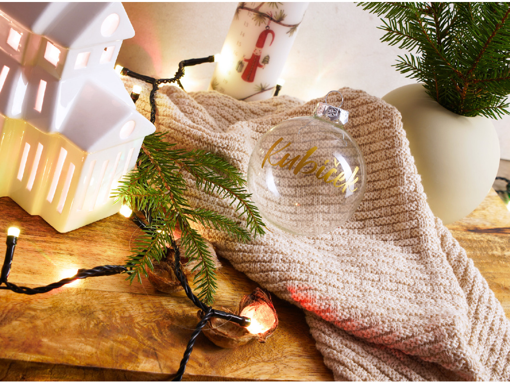Překvapte je něčím výjimečným. Skleněnou kouli se jménem budou moci mít na stromečku každý rok a bude jim připomínat vaši lásku.